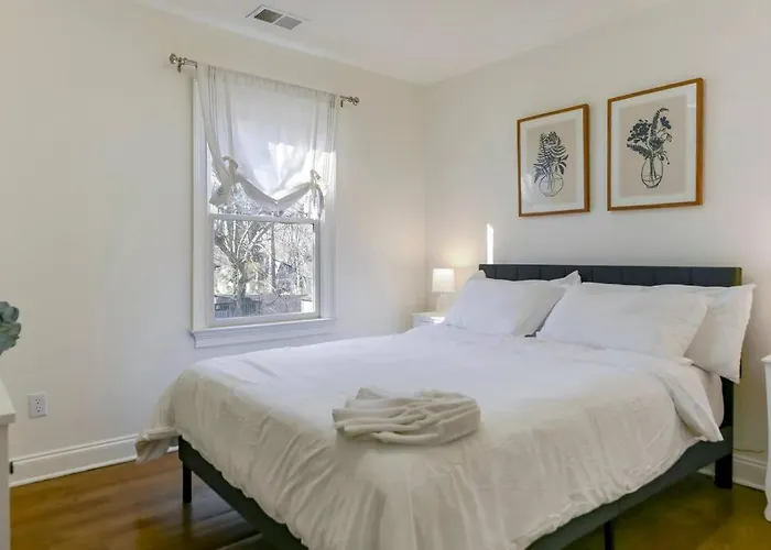 4-Bed 2-Bath Pet Friendly Home In Heart Of Atlanta ligger inom 20 km från Atlanta Hartsfield-Jackson flygplats och cirka 15 minuters bilresa från kulturella sevärdheter som Oakland Cemetery. Gästerna kan besöka Rosel Fann Rec Center, som ligger inom 4,1 km från villan, eller kolla in Krog Street Tunnel, som ligger cirka 7 km bort.